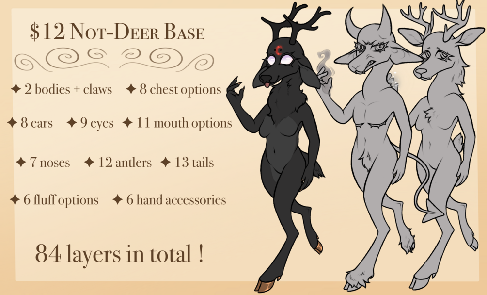 - 84 layers to create your own anthro deer cryptids (or anthro deer in general)!
